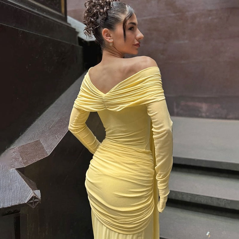 Women's Off-shoulder Slim-fit Lace Up Dress - Yellow / S